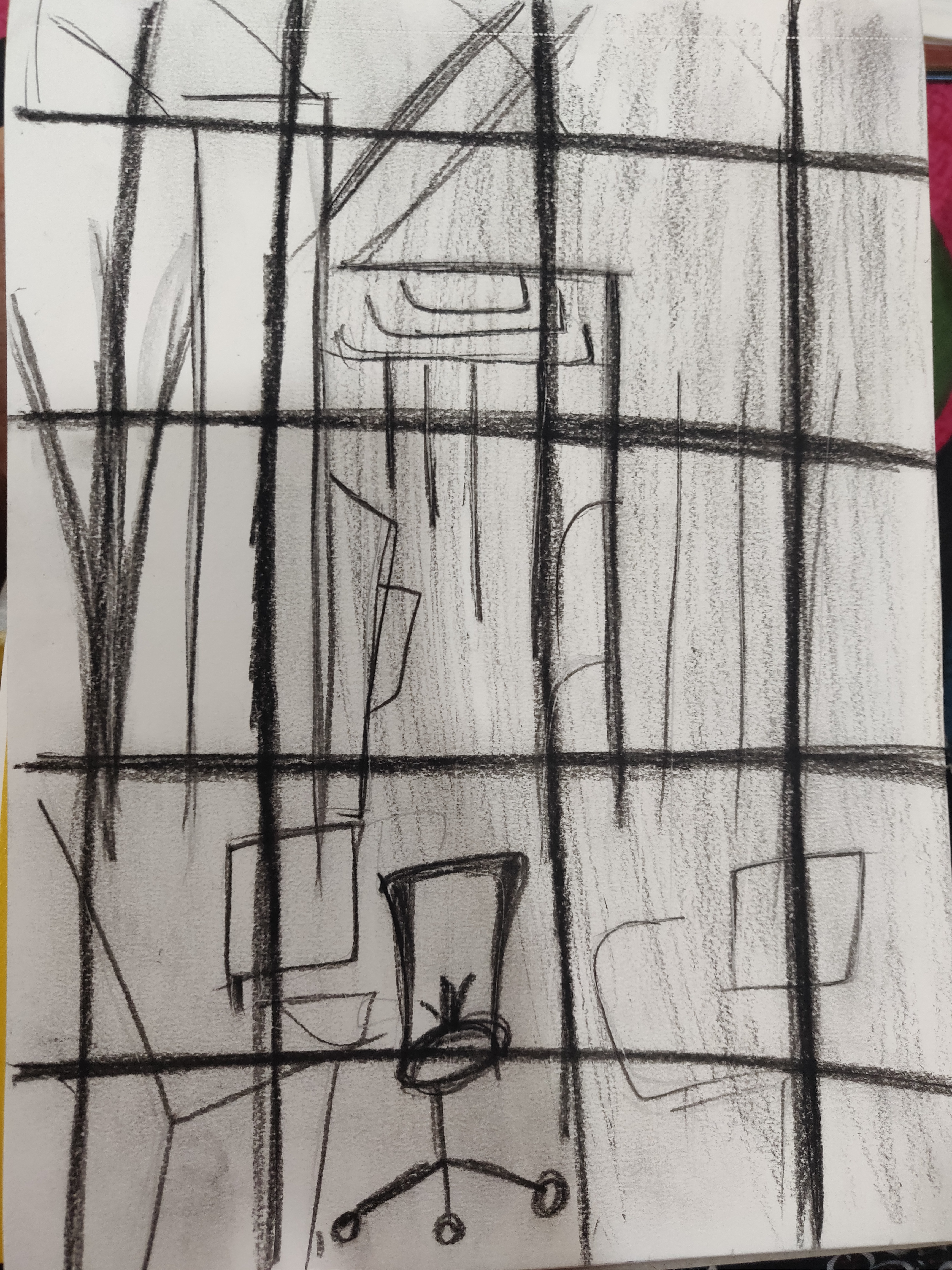 This class’s agenda was to understand the concept and difference between gesture sketching and gesture drawing. The class started with basic sketching which had no rules and regulations only time limits to break the barrier ‘ fear of drawing’. Where we drew stuff which seemed like nothing but subconsciously was making our hands and brains accustomed to sketching. Then to make the class more interesting we had our classmates posing in the most humorous ways and we had to sketch them. The best part of the class was when we were sent to different part of the campus to sketch that corner.This was the best definition of lectures out of the classroom. We even explored a new medium charcoal which added boldness and sharpness to our artwork. Finally, the class ended with drawing 5 parts of your class . In a nut shell this class was first step and a hope of light in the deep dark cave of drawing.