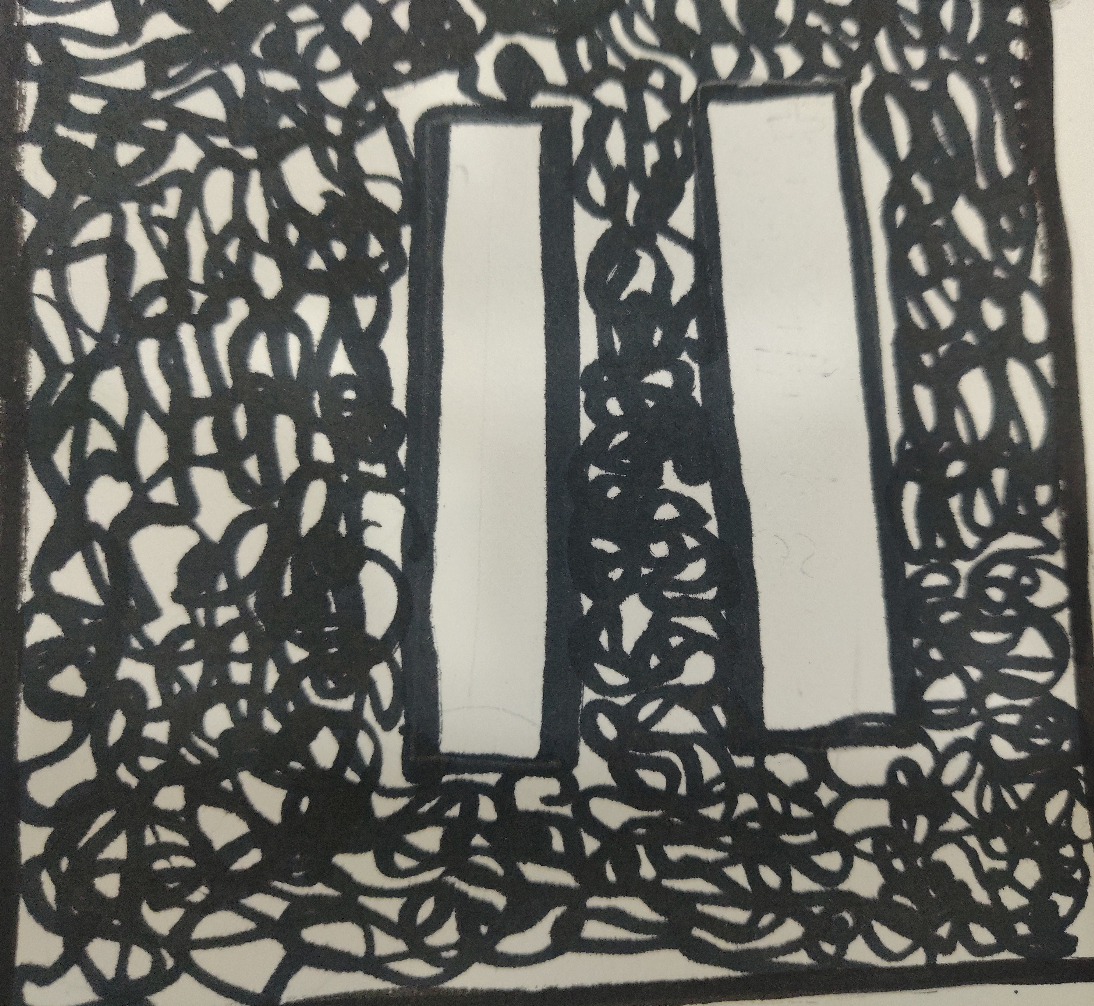 The artwork is described through positive and negative spacing. It has an abstract way of expressing the leaf and petals. It associates with me in such a way that i don’t open up easily to new people and push people away. The lines and dots on the other side seem pokey and sharp which is the truth and reality which a rose with thorns.