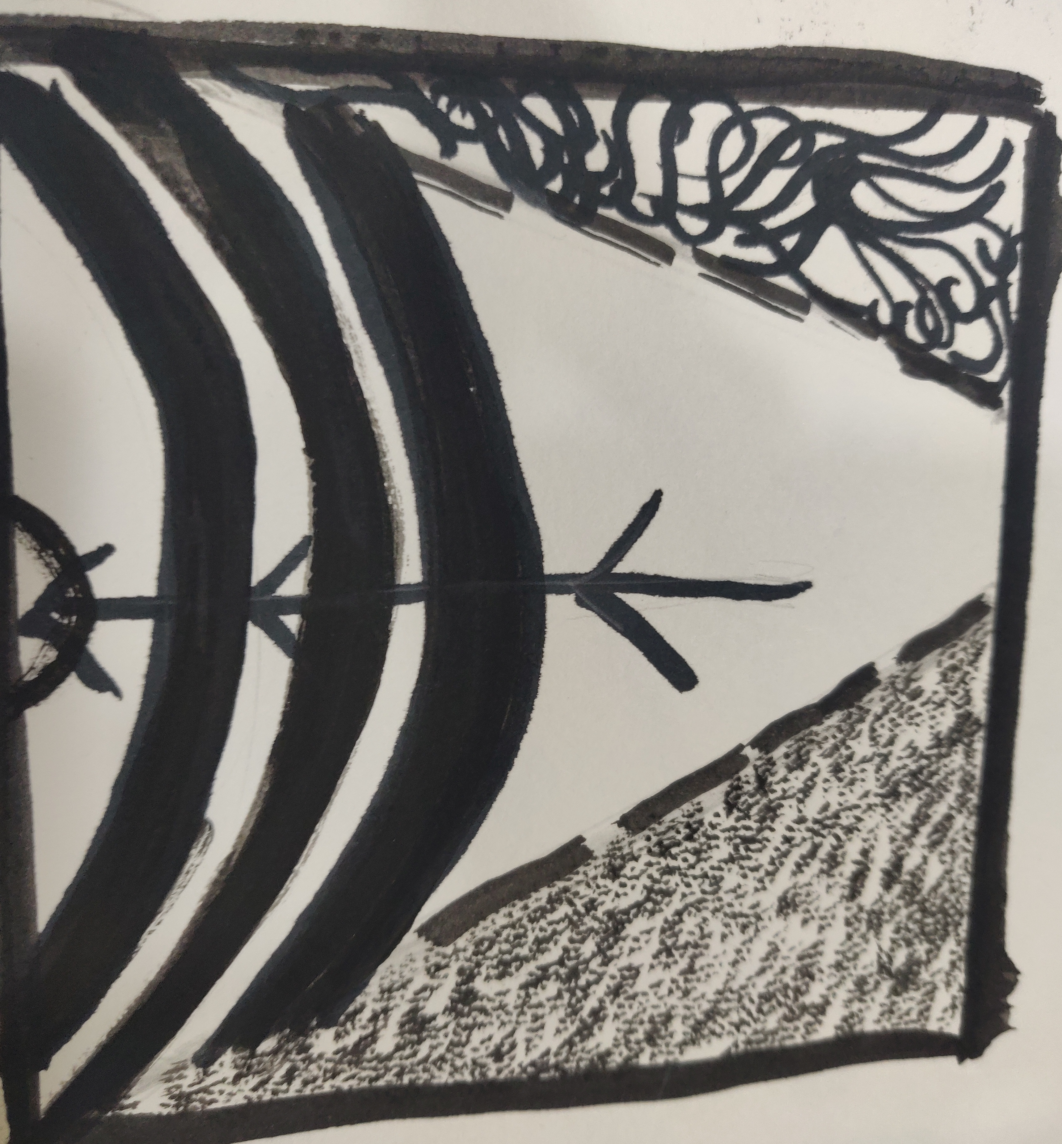 The class commenced with discussing ten metaphors and finalizing so as to they should match to our personality. After converting the creative metaphors into 2D illustrations using abstract was our next assignment. It was using only black color through specific mediums such as ink,poster paint, marker and brush pen .