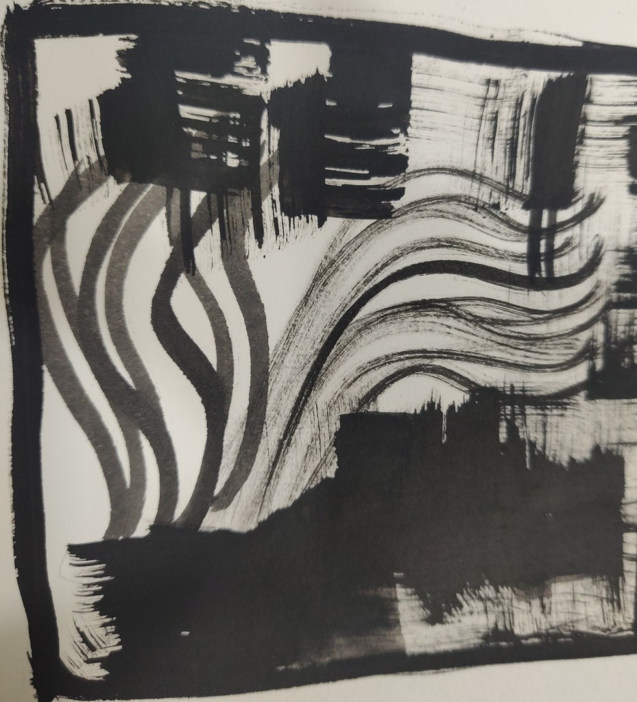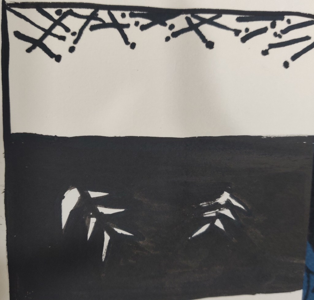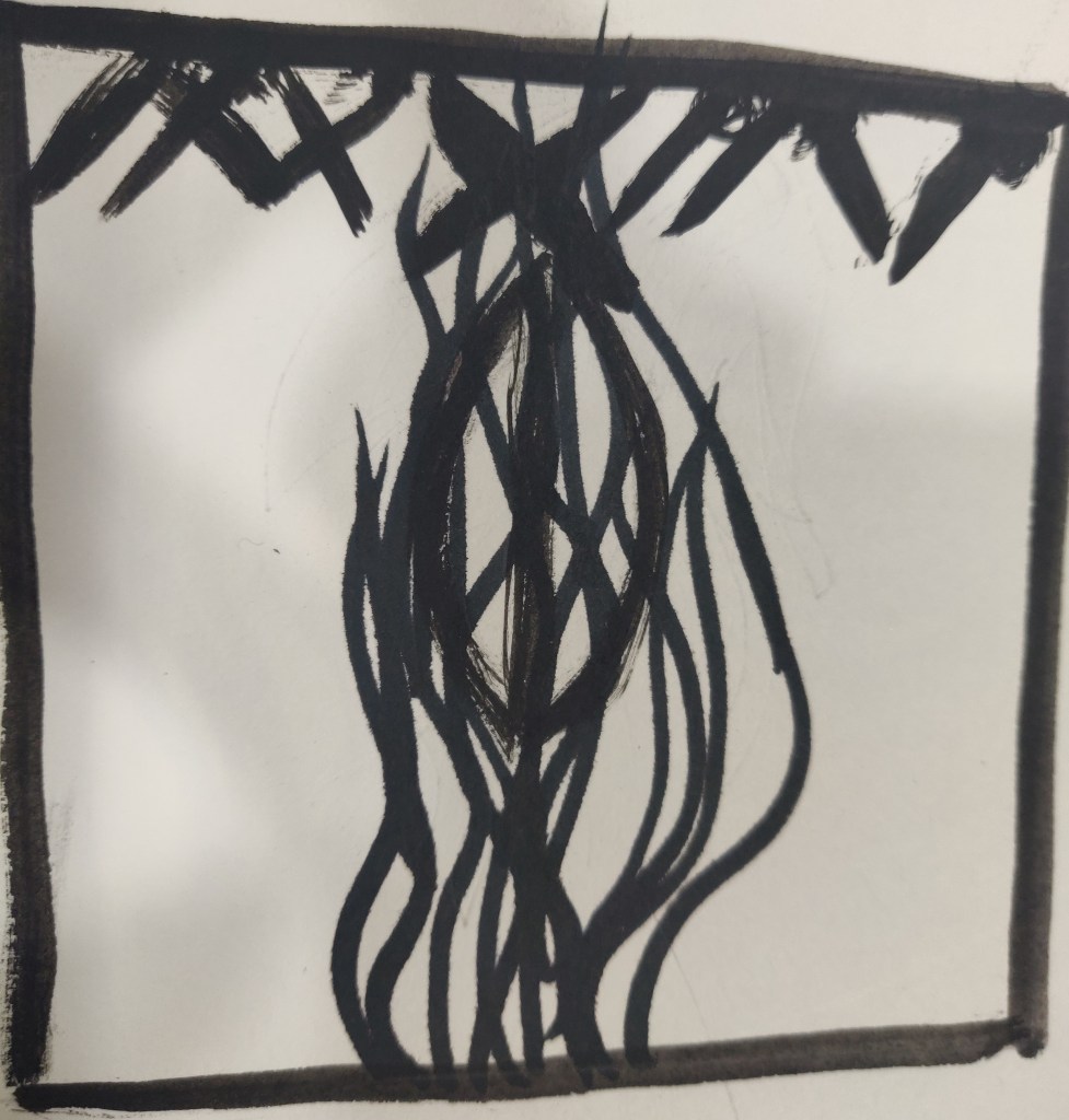 This illustration is a technique of a varies brush stroke that describes the changing weather.Through minimal negative and positive spacing the effect of leaves has been attained. This metaphor helps to connect with my extreme mood swings.