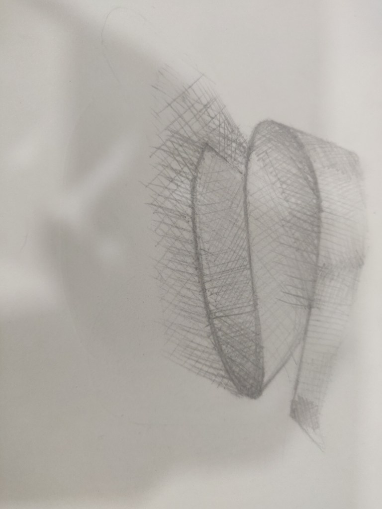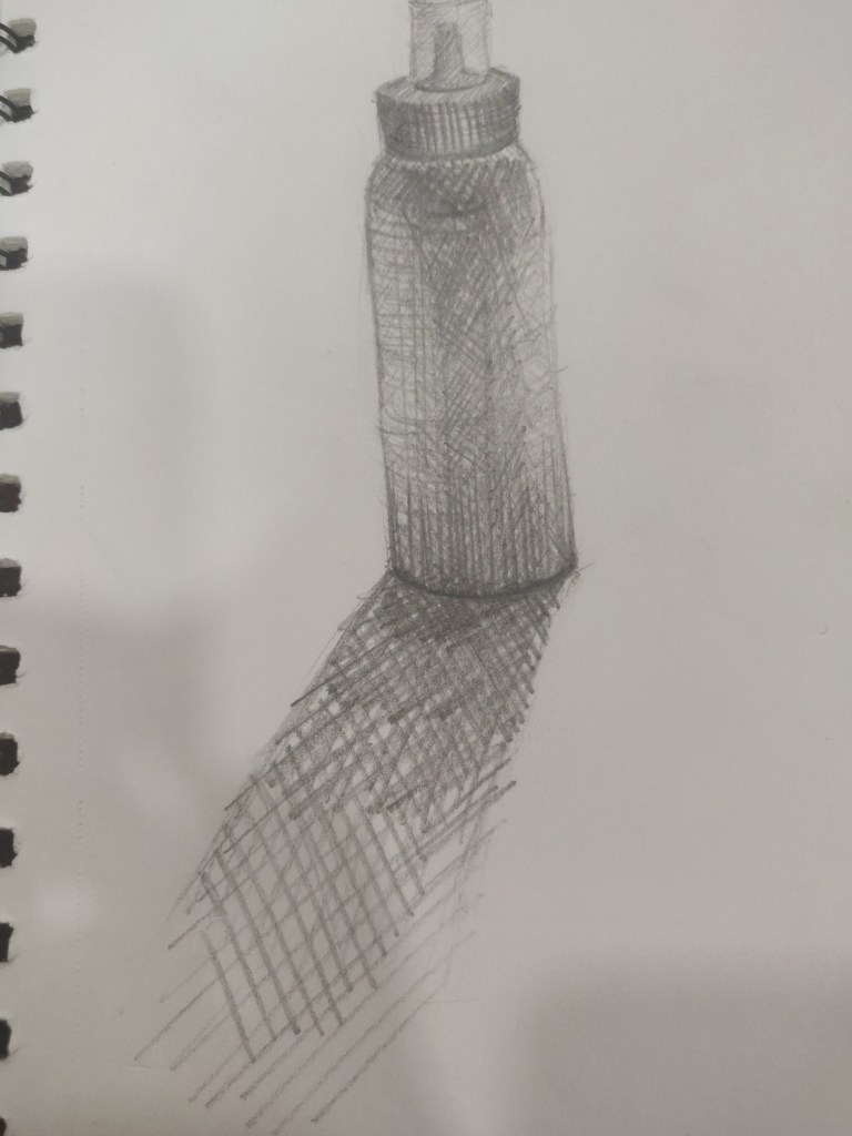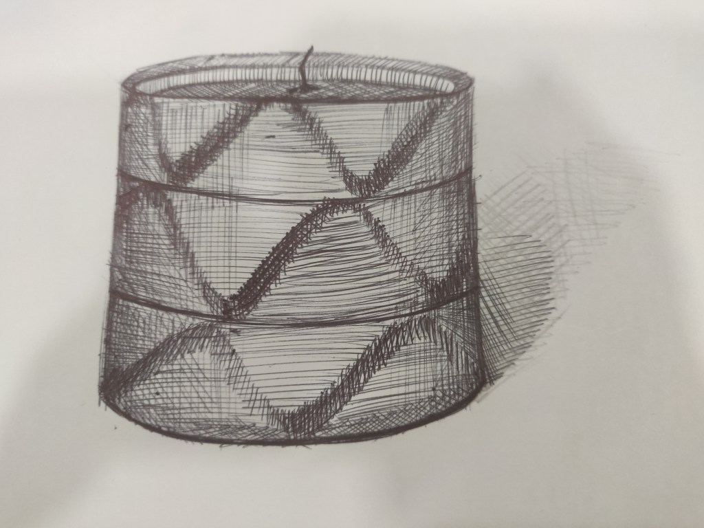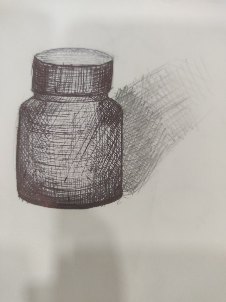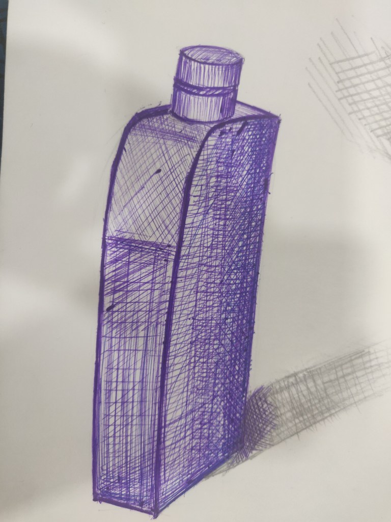 The class commenced with submitting 4 artwork 2 day and 2 night . We also went through our classmates artwork which inspired us to do much better. Next we learnt how a flat object can be given through line weight. The best part was knowing that objects can be contoured. This concept is most likely used in makeup and hence was easily relatable. Then an interesting activity was done where we had to draw to objects for each song . This helped us improve our drawing in limited time. We had to draw 20 sketches out of them choose 10 best and render them using hatching, stippling , scribbling to show difference in material. The last part seemed very important as per fashion point of view which could help us communicate our ideas. In a nutshell internal structure is that judges the outside view.