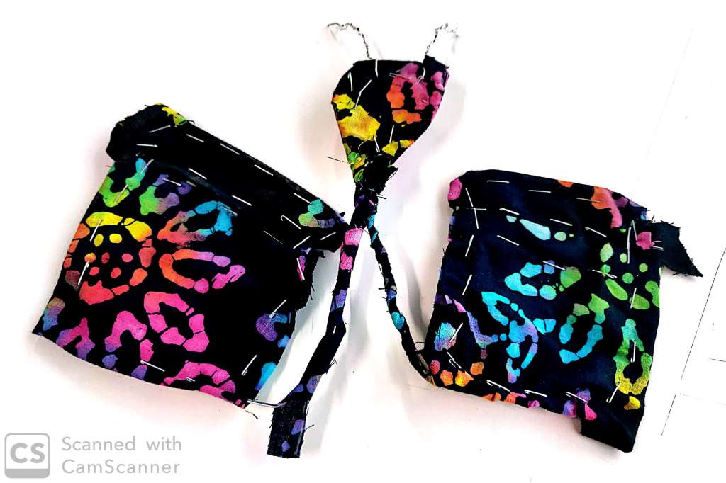 This illustration looks like a butterfly but is a hand grip which portrays the essence of holding tightly in the palm.This is mainly made using wires and is being shaped accordingly.Dividing in shapes it is wrapped in a cotton printed cloth which gave it volume. With the help of staples the cloth was attached to the wires. This model required extreme patience and accuracy in oder to get the right visuals.