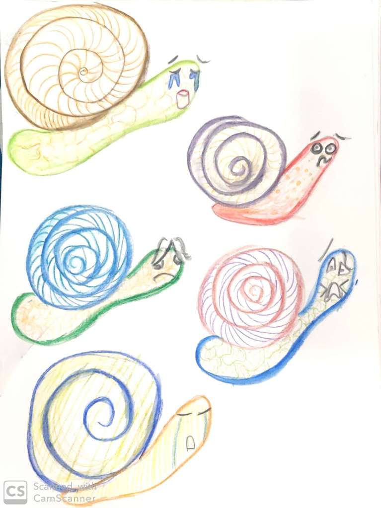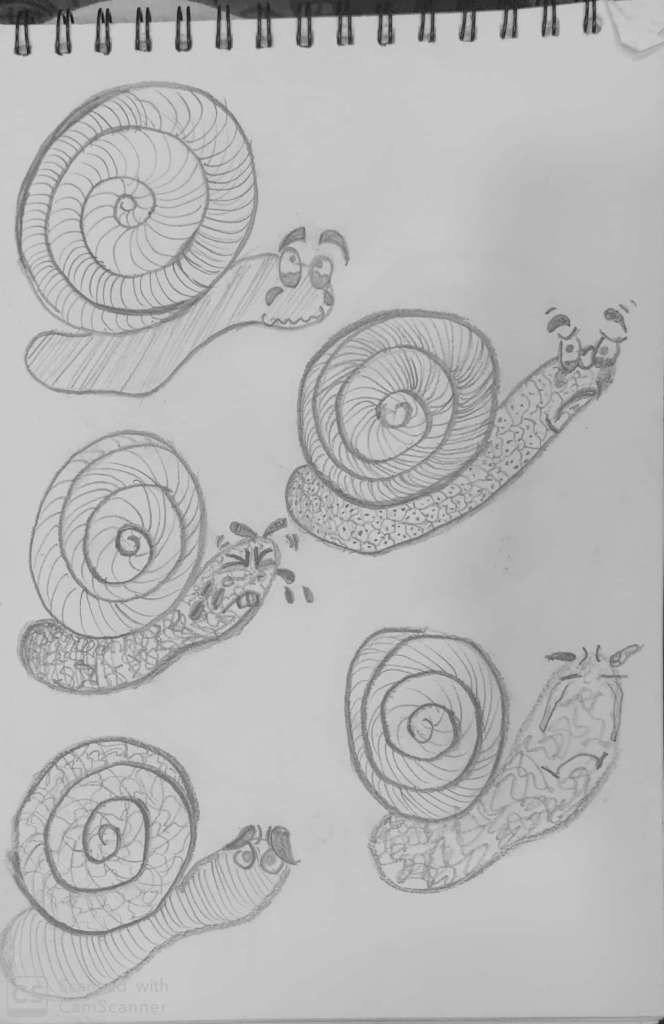 This is mainly done through watercolor pencils.This gave much more flow to the snails.Different rendering and shading ways were used.