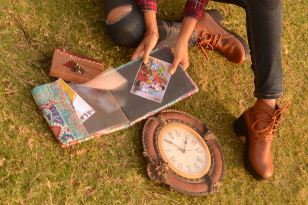 This part where the person goes back in time through wandering between albums.Where brown vintage clock and brown cowboy boots have been used to give that old effect . The camera was turned to warmth yellow tone which gave an ancient effect . This part inspired me from French vintage movies.