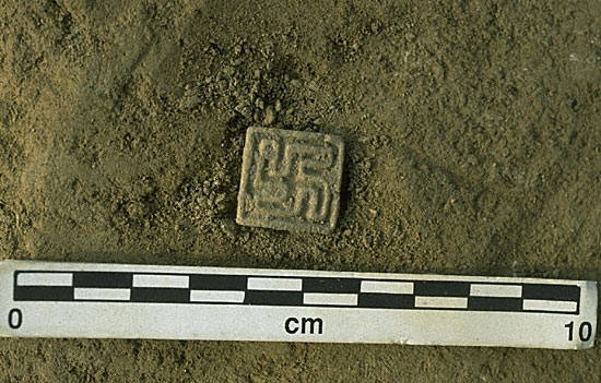 Starting from objects as swatika symbol on them are many in different cultures . Starting from the Harppan civilization which had so many geometric strutures. Where through line weights and spacing variations were created . The most common use of these symbols were for seals in this civilization .