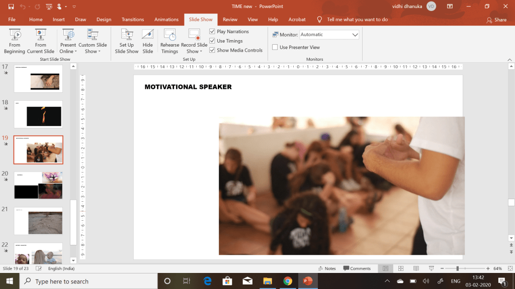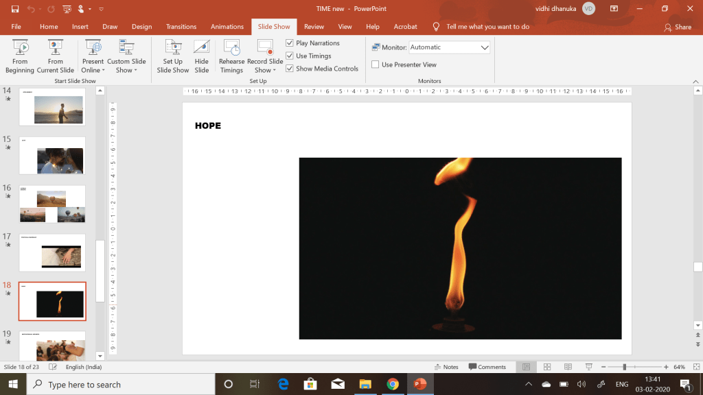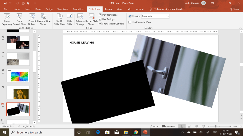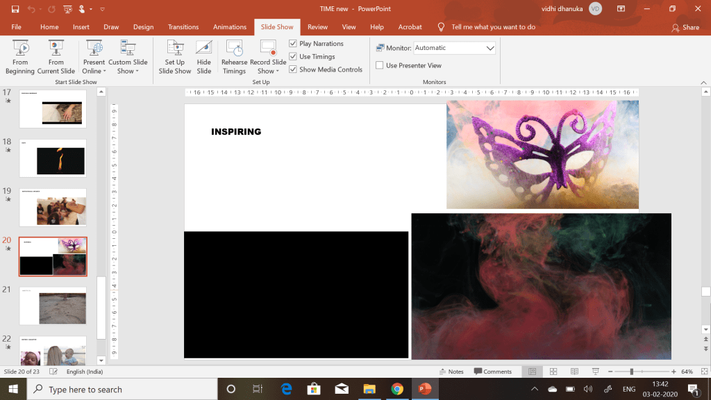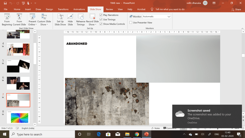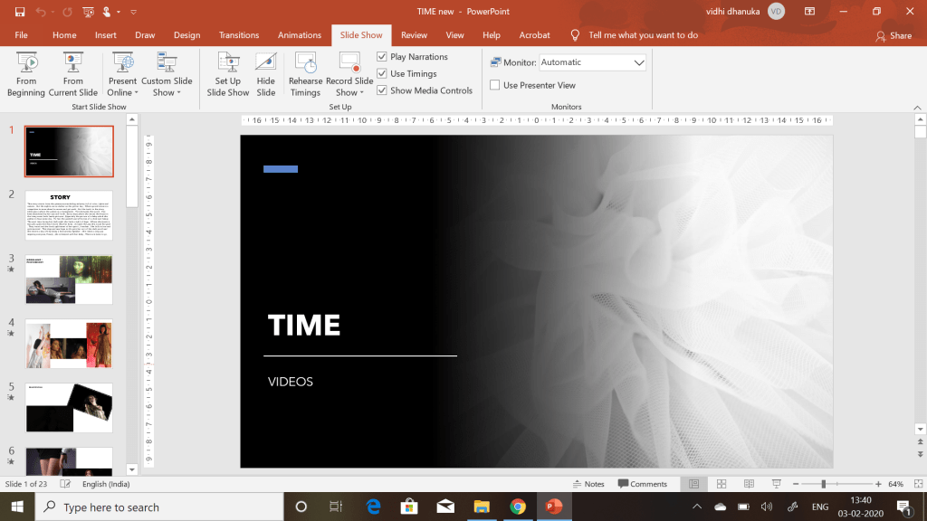 I presented my videos and ideas in a powerpoint presentation to have it in an organized way . At start it created misconceptions but was a sequenced and an easy to understant way format . I added various options for each style to give variety and a sense of exploration.Both metaphoric and literal ways were explored . My story spoke deep em otions and grave reality which i tried to potray with limited videos .Where through feedback also i learnt new ways and alterations which could be made on the basis of making it shorter and adding more connections to video for a sense of connectivity .