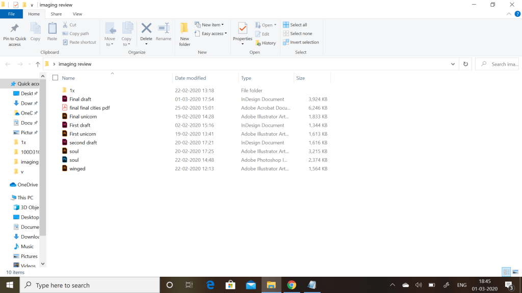 This was my folder which i created before review comprising step by step the process . The assest export is also something new i learnt which helped setting the final layout .