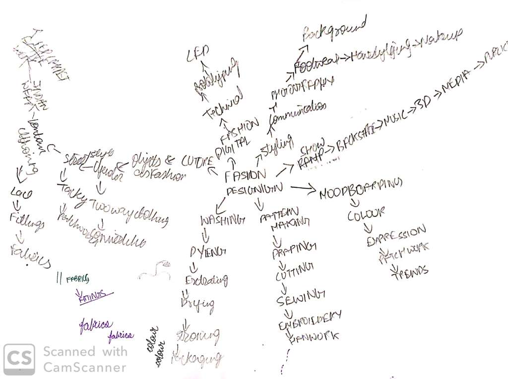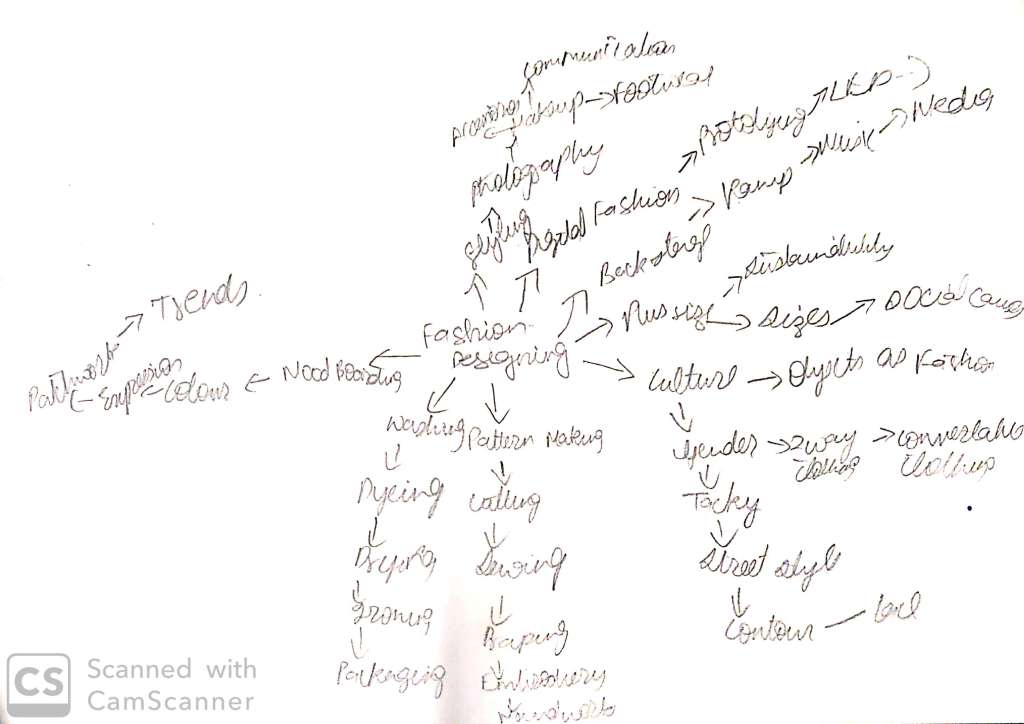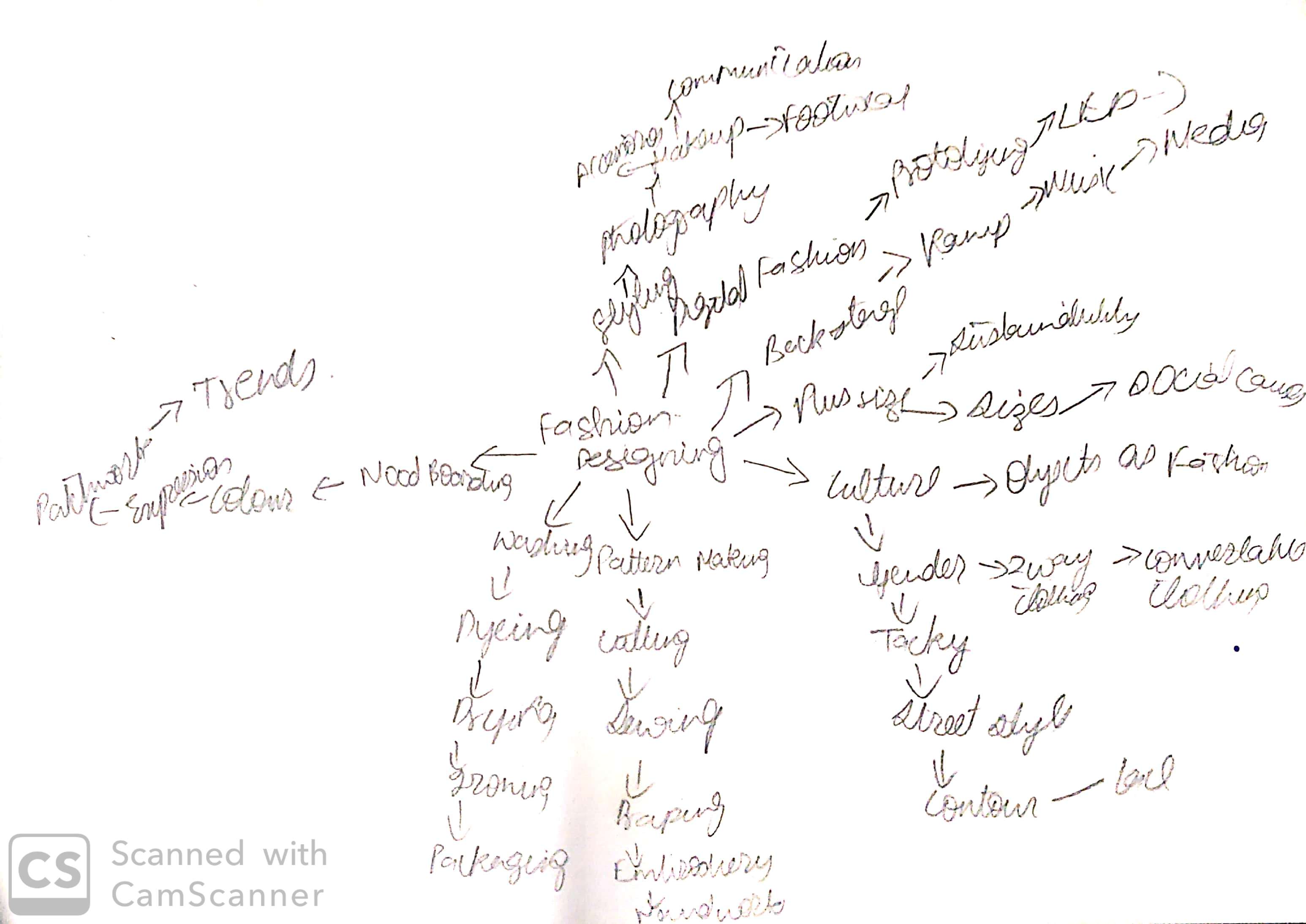 My specialization and passion being fashion designing . This is where i listed down few points aspects fiels that i could actually think of . Then i started dividing them into smaller parts .
