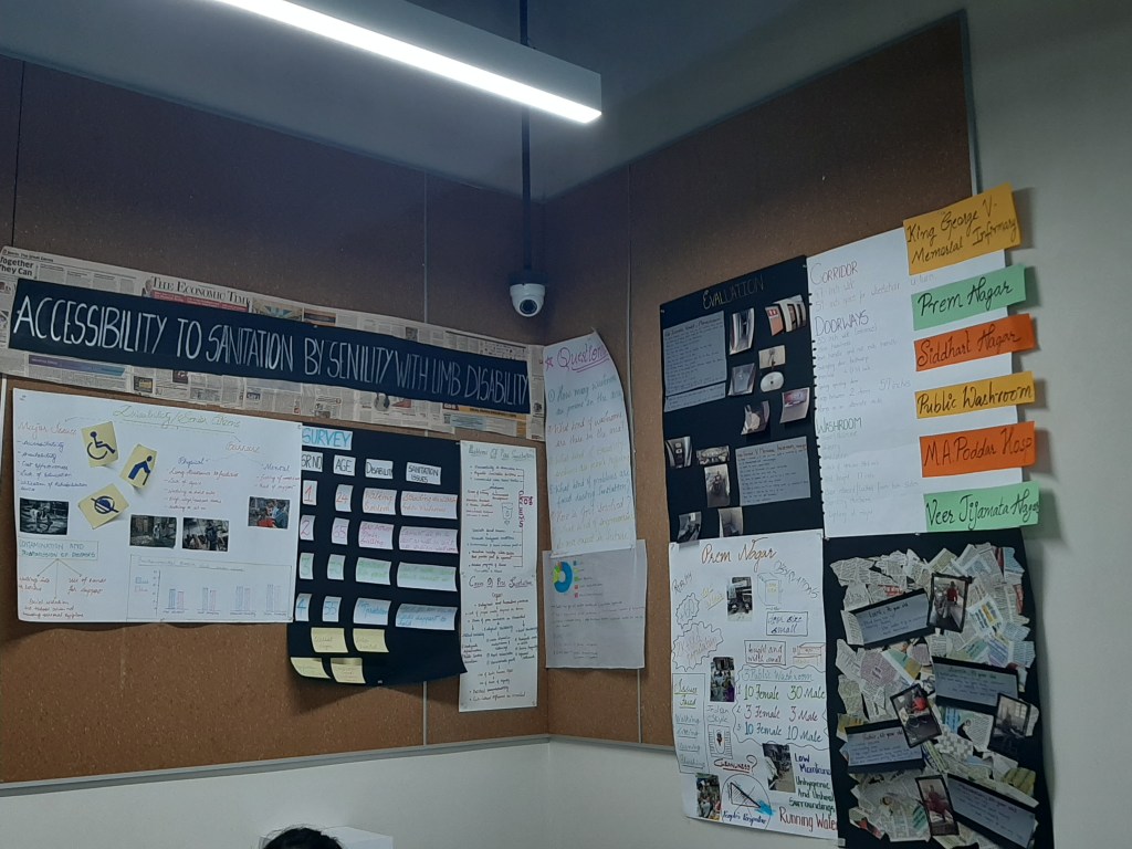 This was our final review . Where we had to present our final findings surveys . This last step of our project was very deep with so many learnings . Our final project where we visited 2 slums and one ngo .